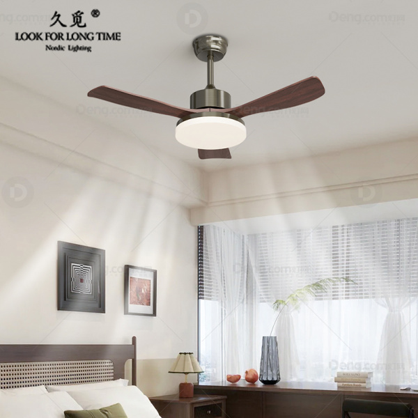 久觅铁艺书房/卧室喷漆磨砂现代简约风扇灯 头数:1头 型号:8830A/3-52寸/青古铜+核桃木/xm
