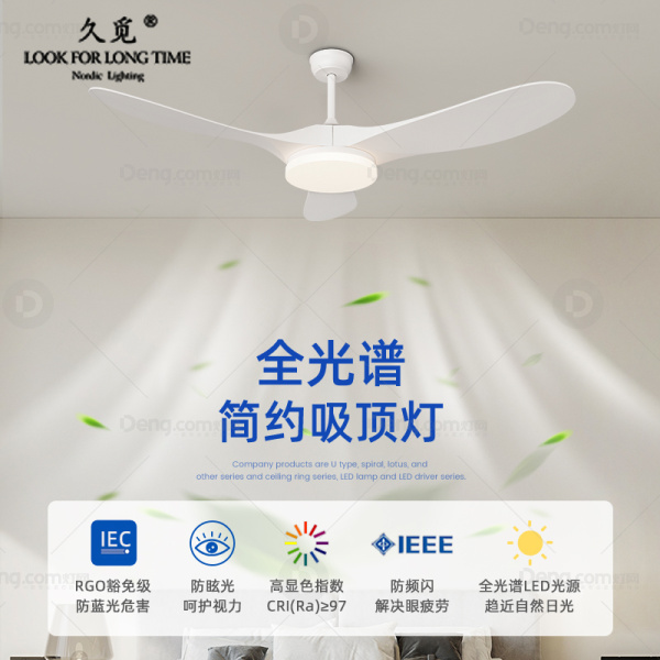 久觅铁艺书房/卧室喷漆磨砂现代简约风扇灯 头数:1头 型号:882/42寸/白色/遥控+壁控