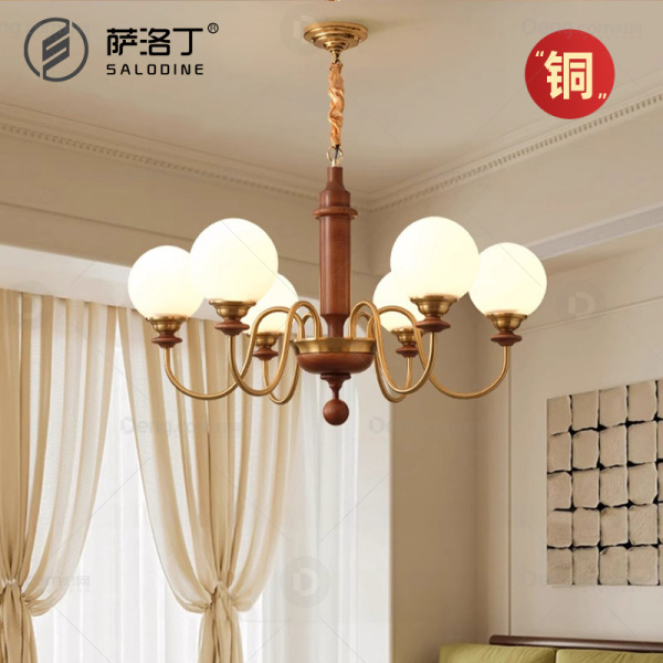 中古风吊灯,灯体:全铜+橡木,简约不单调,经久耐用。灯罩:奶白色玻璃灯罩,手感光滑细腻耐高温,柔和不刺眼。