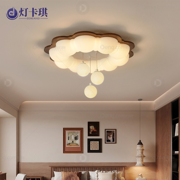 灯卡琪实木书房/卧室喷漆磨砂中古风吸顶灯 型号:3822/胡桃木色/三色变光