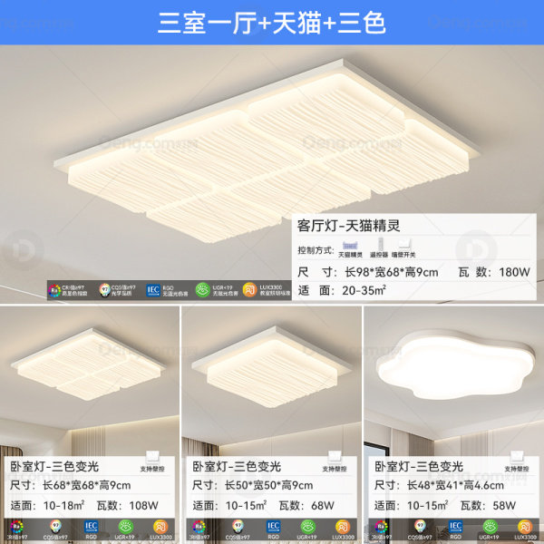 久觅铁艺客厅喷漆磨砂现代简约吸顶灯 型号:8253套餐/白色/三室一厅/天猫+三色