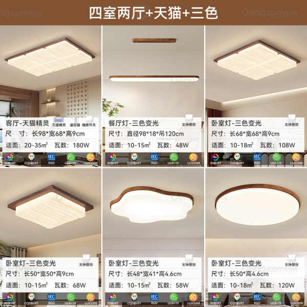 久觅铁艺客厅喷漆磨砂现代简约吸顶灯 型号:8253套餐/胡桃木色/四室两厅/天猫+三色
