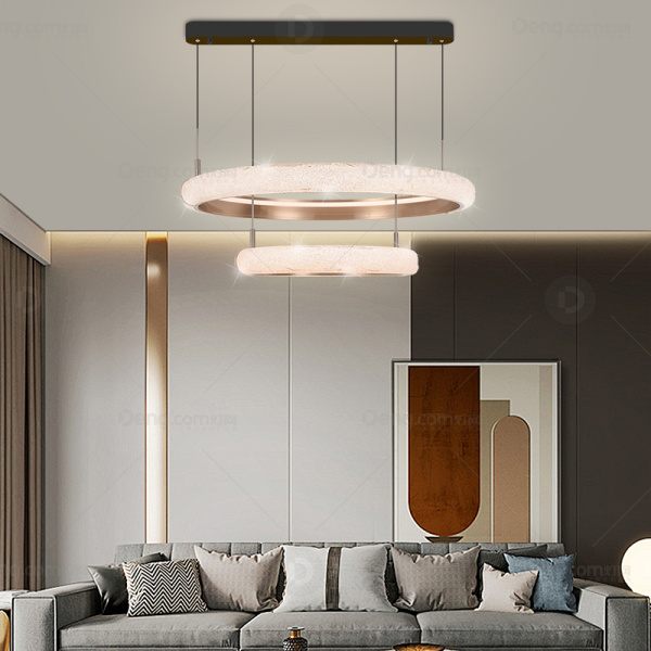 禾圣铝材客厅雕刻轻奢吊灯 头数:2头 型号:D8702同心圆/5+8-拉丝玫瑰金
