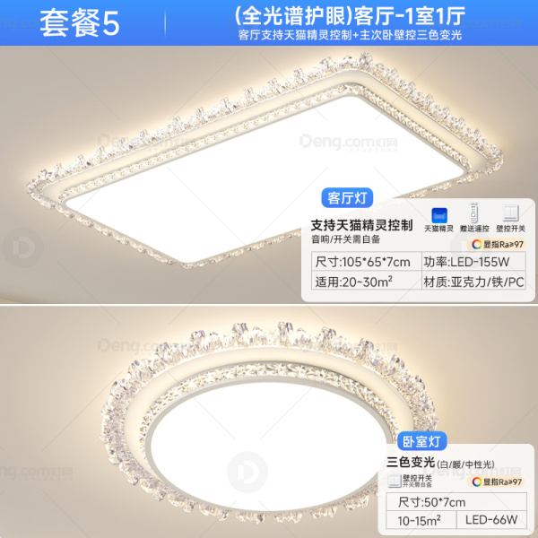 久觅铁艺客厅喷漆磨砂现代简约吸顶灯 型号:8275套餐/白色/一室一厅/天猫+三色