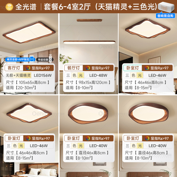 久觅铁艺客厅喷漆磨砂现代简约吸顶灯 型号:8987套餐/胡桃木色/四室两厅/天猫+三色