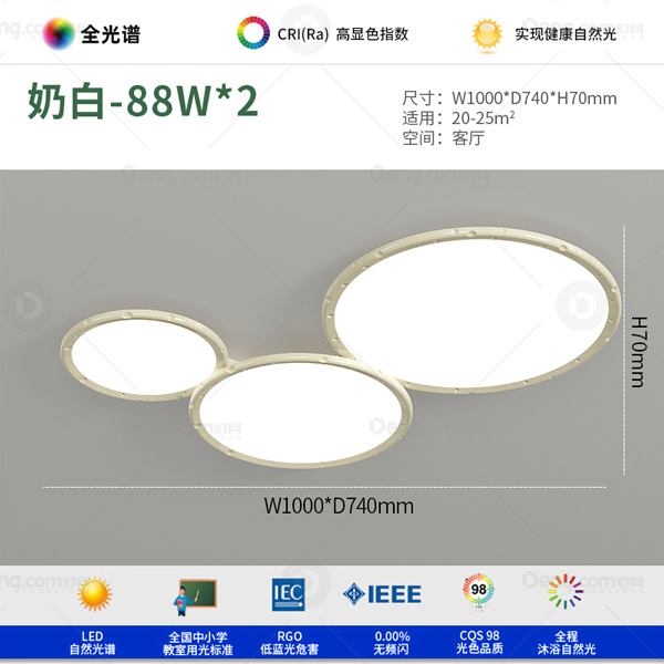 灯庭铁艺客厅喷漆磨砂现代简约吸顶灯 型号:WM8004-100奶白全光谱三色