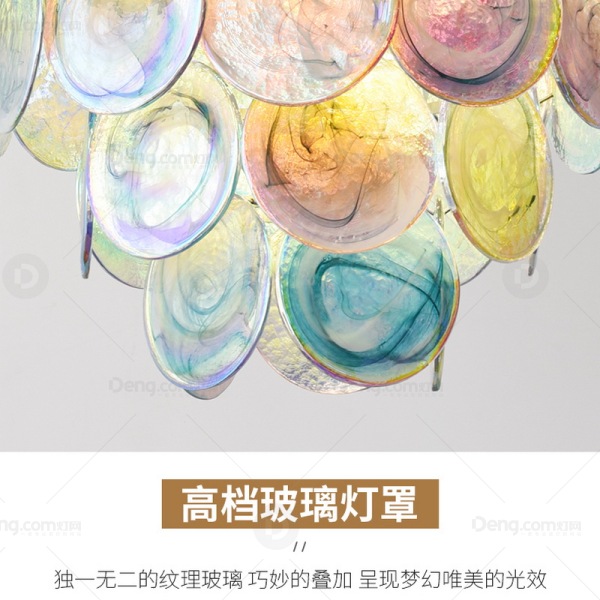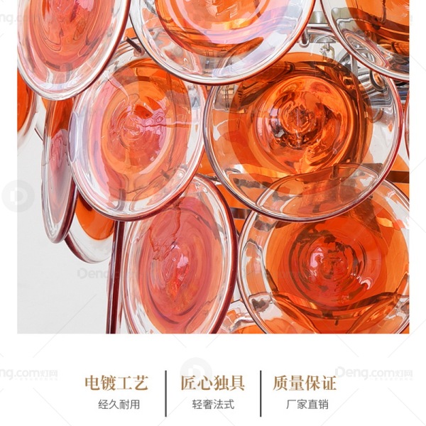 埃瑞达铁艺书房/卧室电镀轻奢吊灯 头数:6头 型号:9595-500三层-吊杆款(葡萄红玻璃)