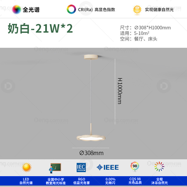 灯庭铁艺餐厅喷漆磨砂现代简约吊灯 头数:1头 型号:WM8015-30奶白全光谱三色