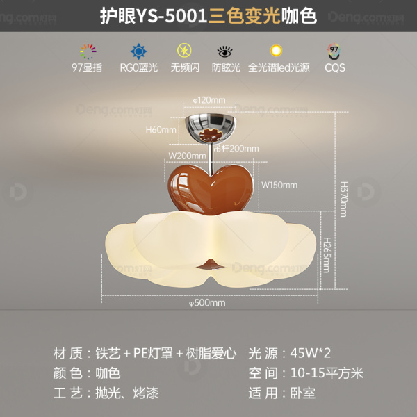 鸿瑞灯饰铁艺书房/卧室喷漆磨砂现代简约吊灯 头数:1头 型号:YS-5001-50咖色三色
