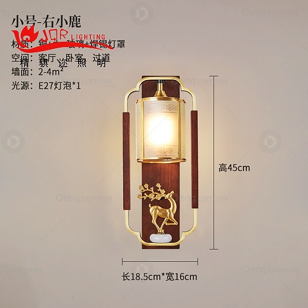 精骐迩铜书房/卧室染色新中式壁灯 头数:单头 型号:B5017-右小鹿/小号/焊锡灯罩