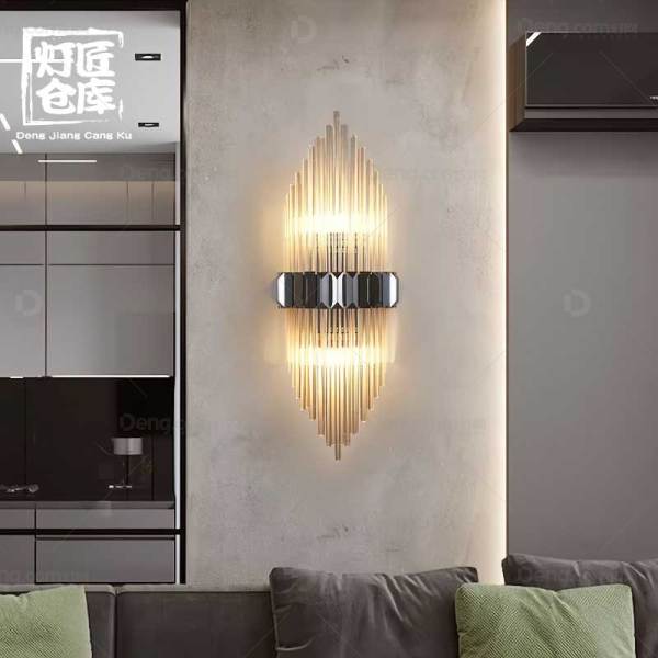 轻奢水晶壁灯书房卧室床头灯创意楼梯走廊客厅电视背景墙格栅壁灯