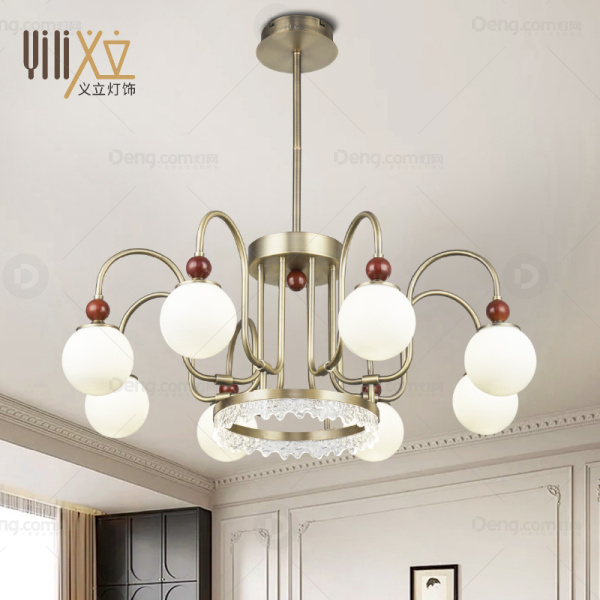 义立灯饰铁艺客厅电镀中古风吊灯 头数:8头 型号:327-8头