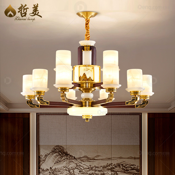 哲美铜客厅染色新中式吊灯 头数:12头 型号:CL9831-12头玉石灯罩