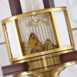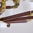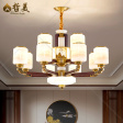 新中式 吊灯 铜+沙比利木灯臂 实木拉杆 玉石发光中柱底锅 玻璃玉石灯罩可选