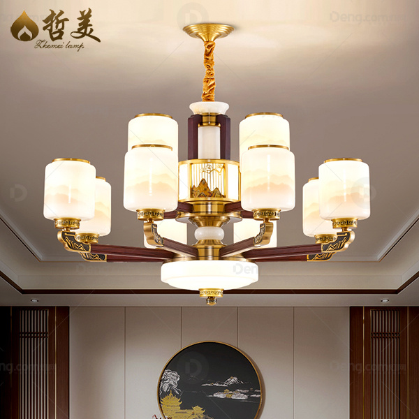 哲美铜客厅染色新中式吊灯 头数:12头 型号:CL9831-12头玻璃灯罩
