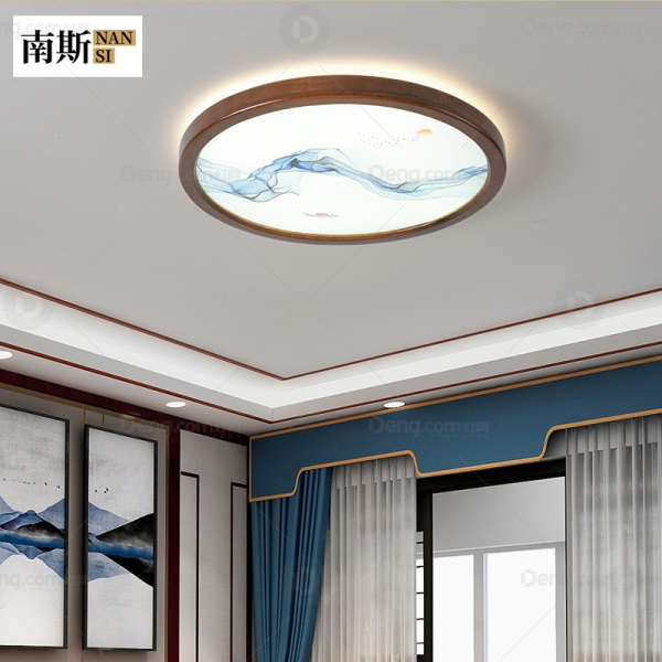 南斯实木书房/卧室其他/other中式吸顶灯 型号:8276黑胡桃木色Φ500-三色变光
