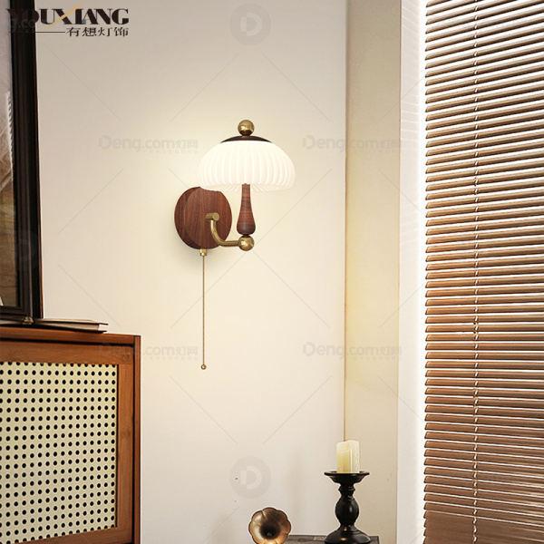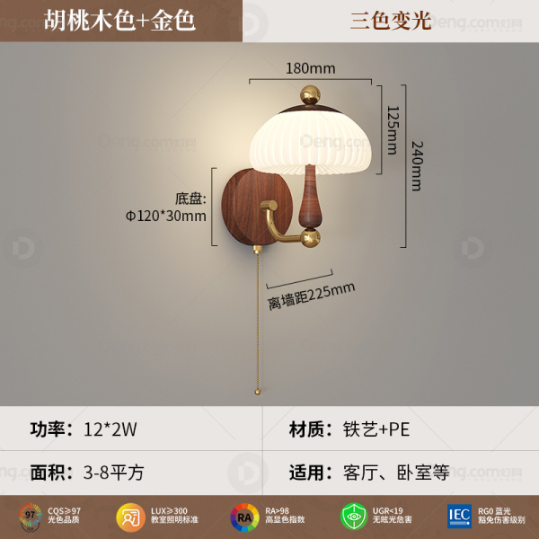 复古法式中古风胡桃木色铁艺+PE壁灯