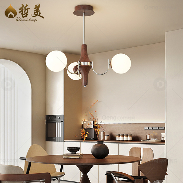 中古风 吊灯 铁艺 胡桃砂镍色 玻璃灯罩