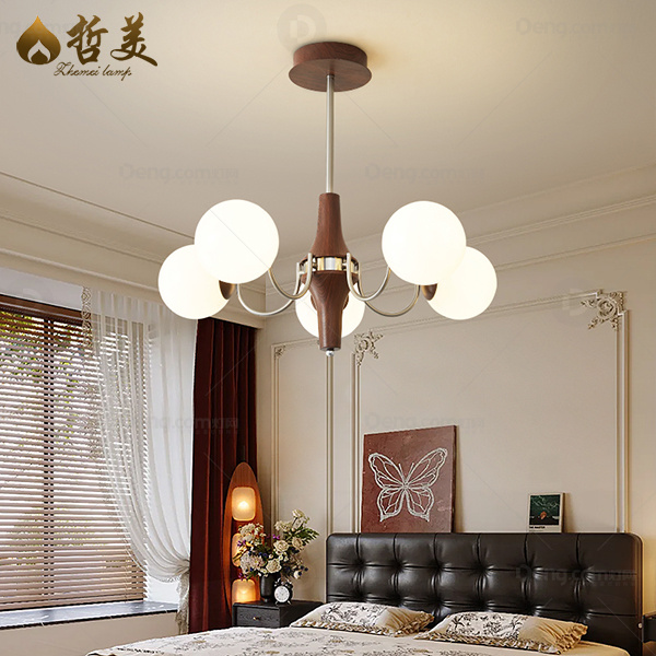 中古风 吊灯 铁艺 胡桃砂镍色 玻璃灯罩