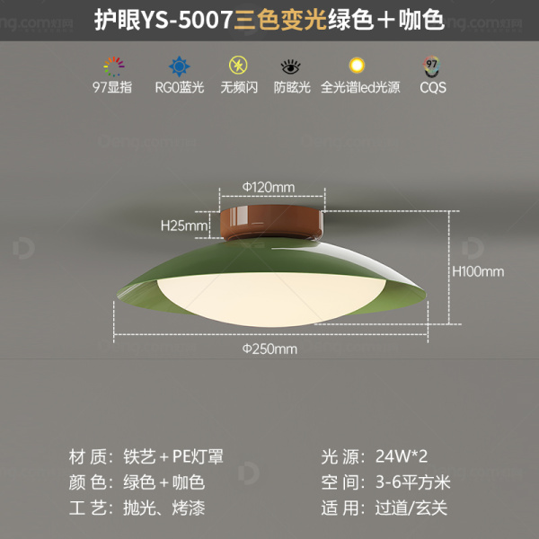 鸿瑞灯饰铁艺走廊/过道/玄关喷漆磨砂奶油风壁灯 头数:单头 型号:YS-5007-25-绿色