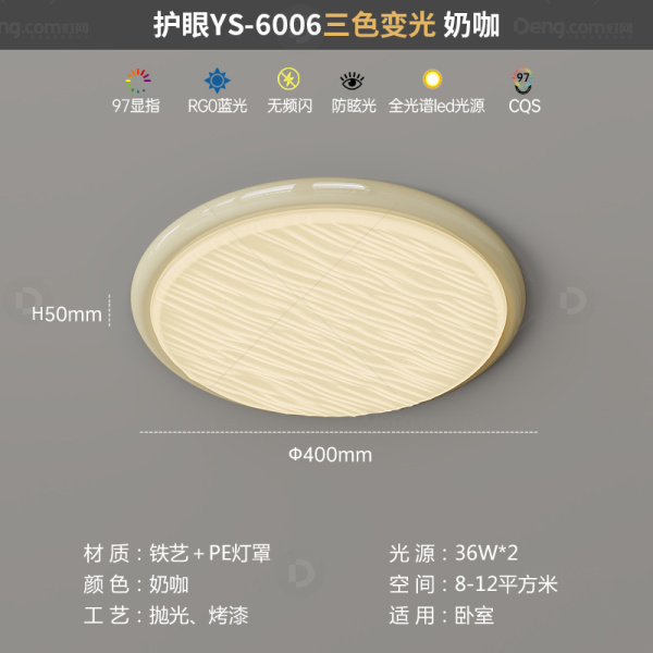 鸿瑞灯饰铁艺书房/卧室喷漆磨砂奶油风吸顶灯 型号:YS-6006-40-奶咖色