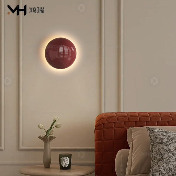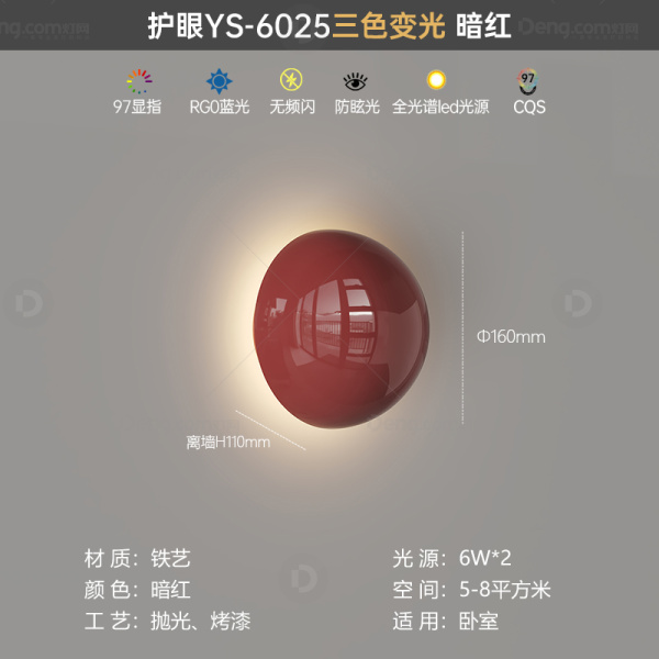鸿瑞灯饰铁艺书房/卧室喷漆磨砂奶油风壁灯 头数:单头 型号:YS-6025款-暗红-三色