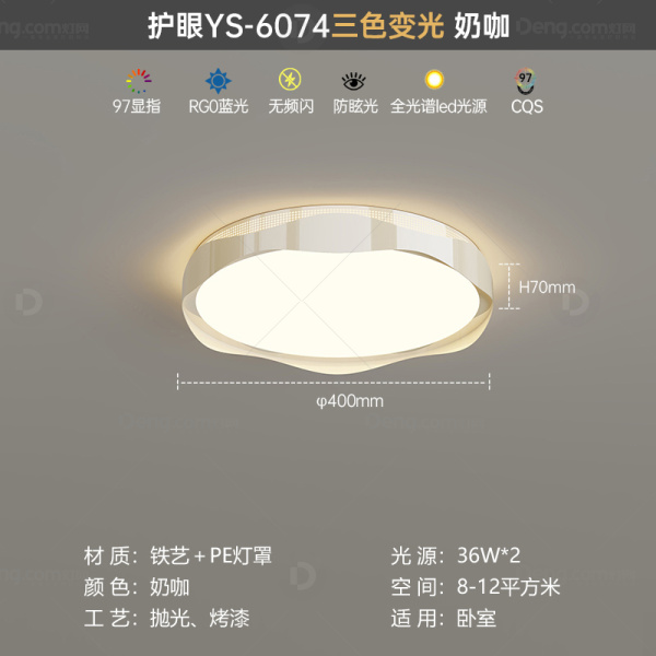 鸿瑞灯饰铁艺书房/卧室喷漆磨砂奶油风吸顶灯 型号:YS-6074-40款奶咖-三色