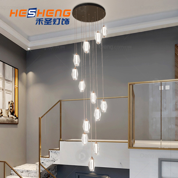 禾圣铝材楼梯/拐角电镀现代简约吊灯 头数:13头 型号:D8707/13-沙黑+韩国金(预售15天)