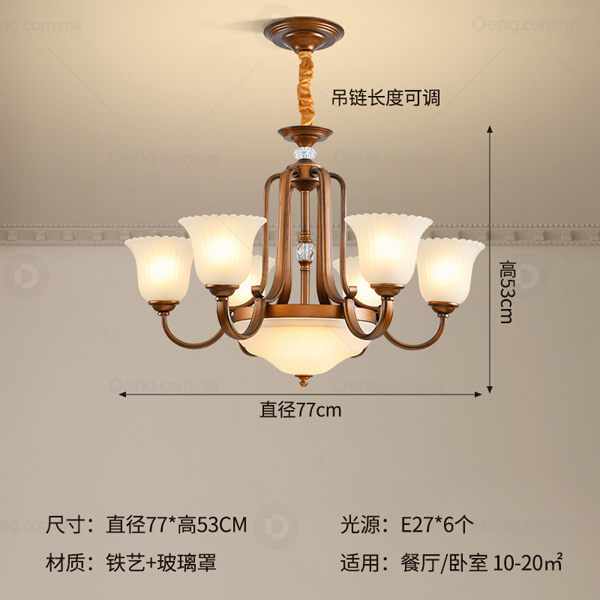 金琦丽玻璃餐厅拉丝垂吊欧式吊灯 头数:6头 型号:20830-6