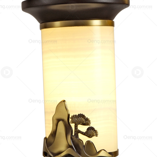 新中式胡吊灯胡桃木色橡木+铜+玉石灯罩