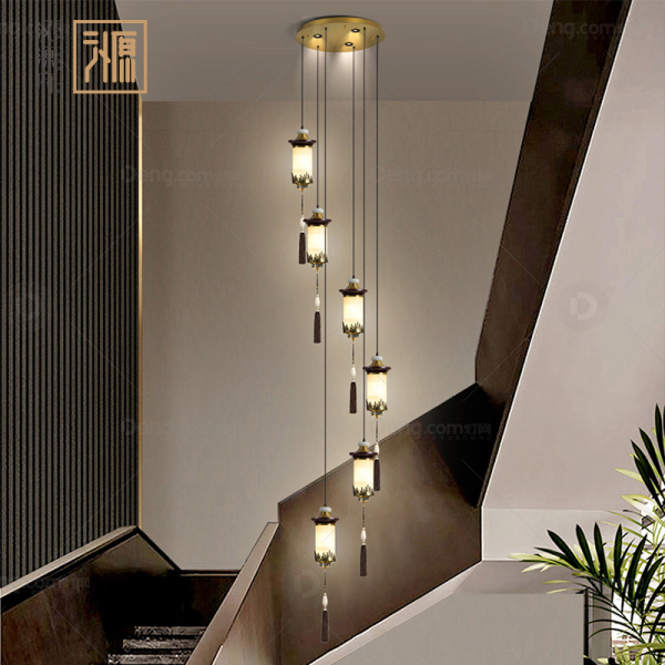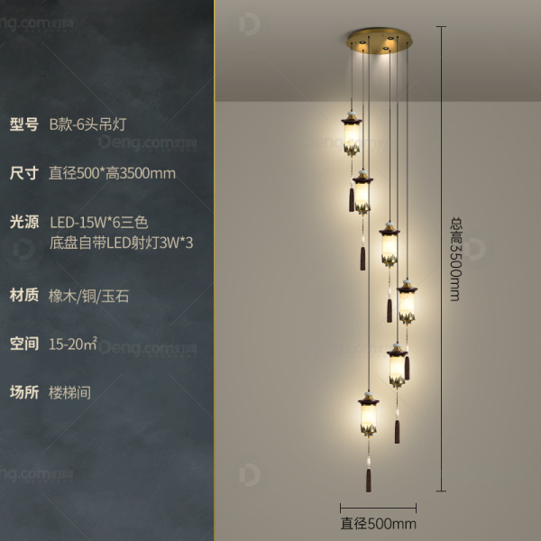 汉源府实木楼梯/拐角其他/other新中式吊灯 头数:6头 型号:8082-B款6头吊灯