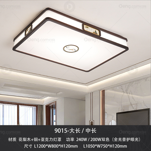 汉源府实木客厅染色新中式吸顶灯 型号:9015-中长200W双色