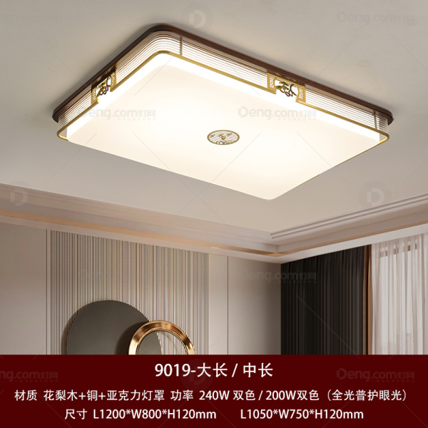 汉源府实木客厅染色新中式吸顶灯 型号:9019-大长240W双色