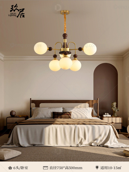 玖居铁艺书房/卧室其他/other中古风吊灯 头数:6头 型号:ZG2502-6