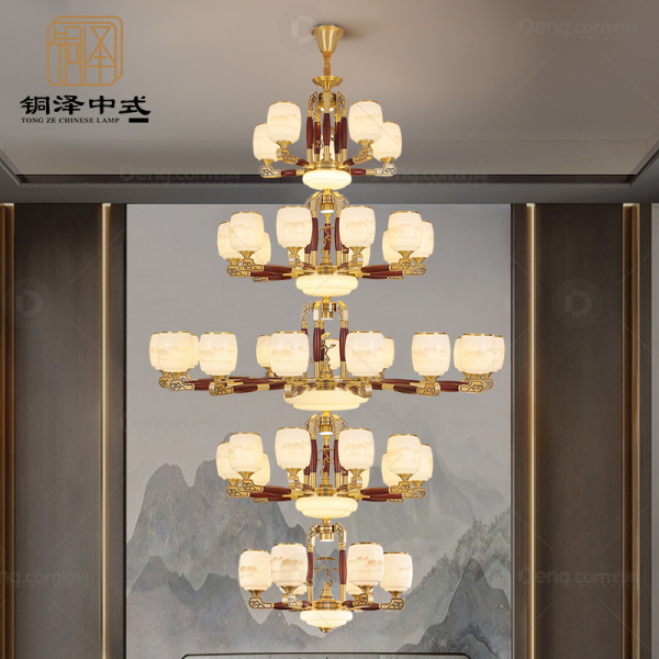 铜泽铜高层/复式染色新中式吊灯 头数:24头以上 型号:YY7219-5+10+15+10+6