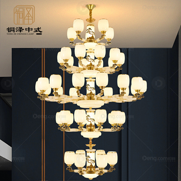 铜泽铜别墅/酒店大堂染色新中式吊灯 头数:24头以上 型号:YY6102-5+10+15+10+6