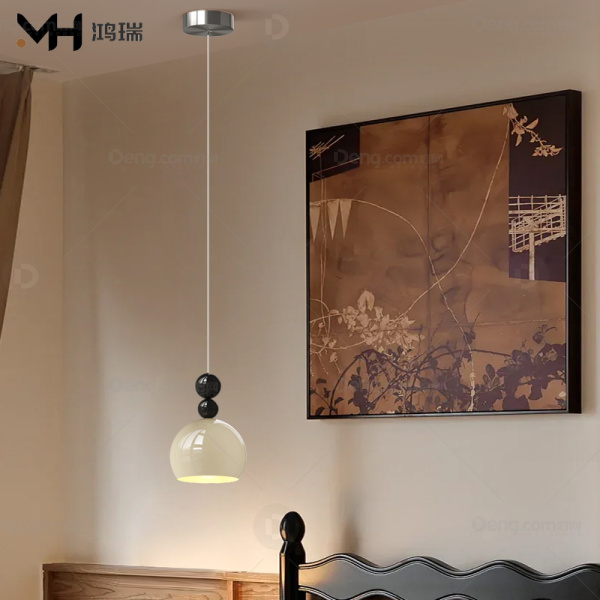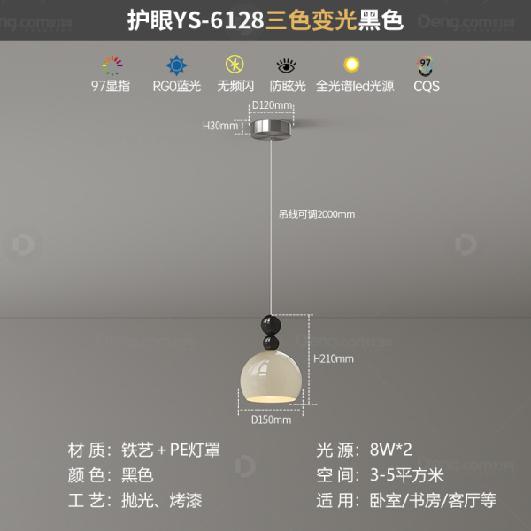 鸿瑞灯饰铁艺书房/卧室喷漆磨砂奶油风吊灯 头数:1头 型号:YS-6128吊线款奶油色+亮黑-三色