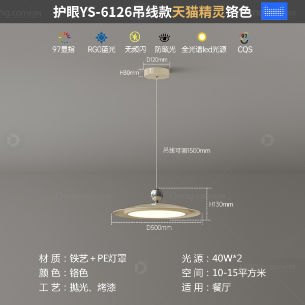 鸿瑞灯饰铁艺书房/卧室喷漆磨砂奶油风吊灯 头数:1头 型号:YS-6126-50吊线款奶油色+铬色-天猫