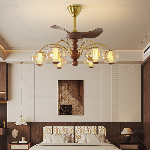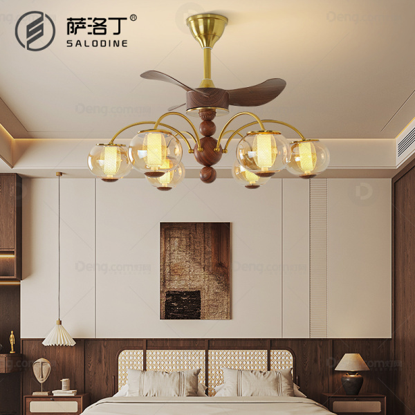 萨洛丁铁艺书房/卧室其他/other中古风吊灯 头数:6头 型号:7292-6头风扇灯(三色变光)