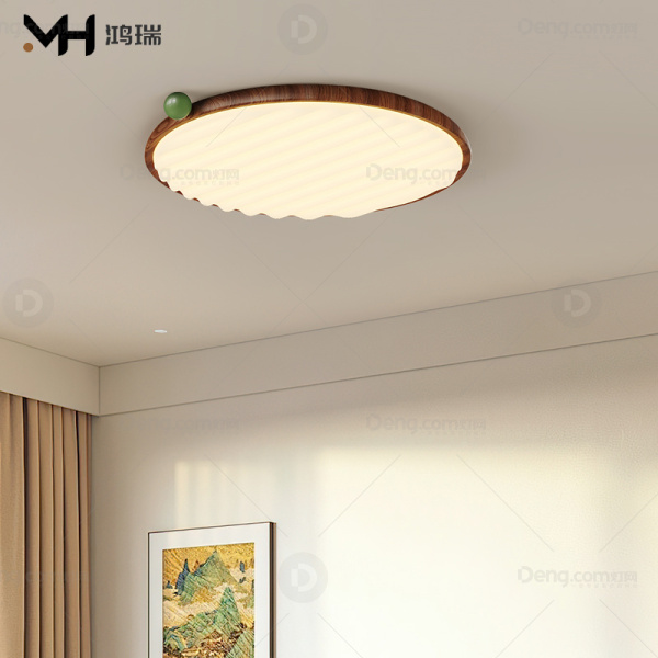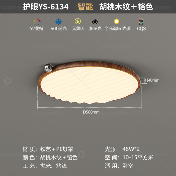 鸿瑞灯饰铁艺书房/卧室其他/other中古风吸顶灯 型号:YS-6134-50款胡桃木纹+铬色-智能