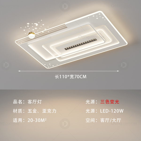 鸿瑞灯饰铁艺客厅喷漆磨砂现代简约吸顶灯 型号:YS-6603长方款白色-三色