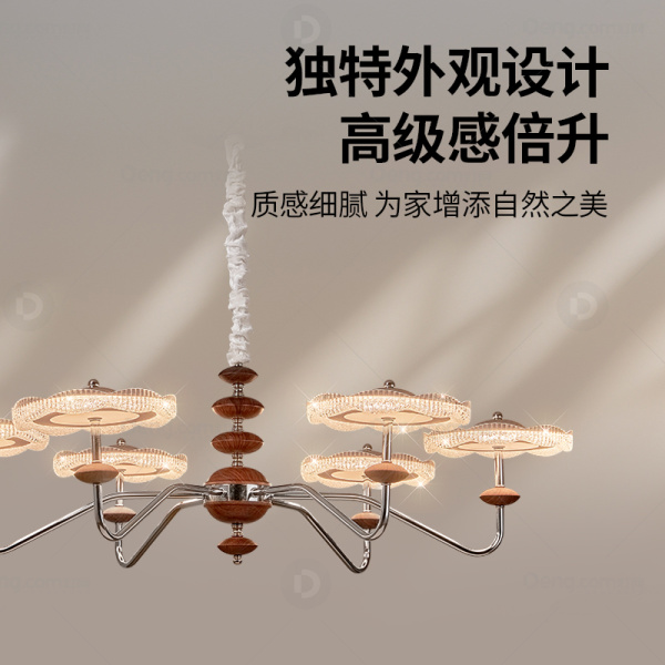 灯小美铁艺书房/卧室电镀中古风吊灯 头数:6头 型号:D2953-6胡桃木全光谱三色光