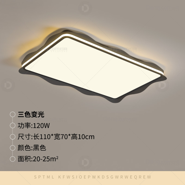 鸿瑞灯饰铁艺书房/卧室喷手漆现代简约吸顶灯 型号:YH-2671-110长方黑色三色