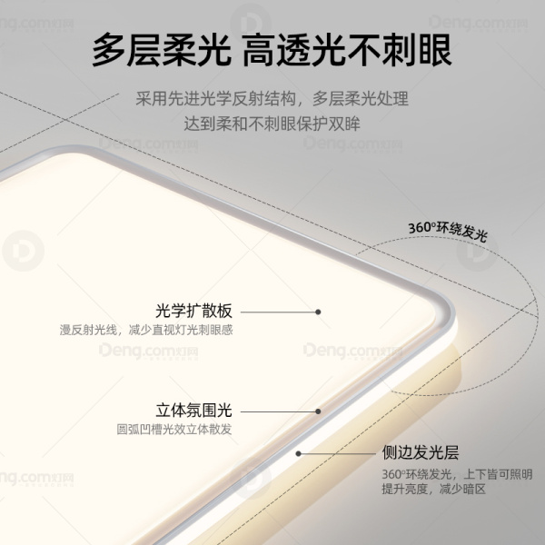 全光普护眼,轮廓分明,流畅线条,亮度翻倍,经典又时尚、大面积发光、全光普护眼Ra≥97
