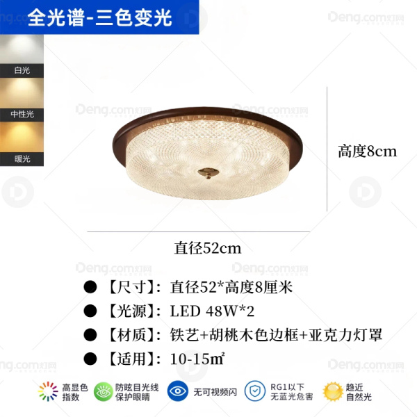 甲米·原木铁艺书房/卧室喷漆磨砂新中式吸顶灯 型号:842-52三色