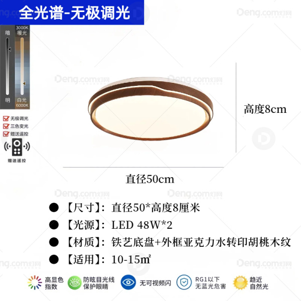 甲米·原木铁艺书房/卧室喷漆磨砂中式吸顶灯 型号:848-50无极