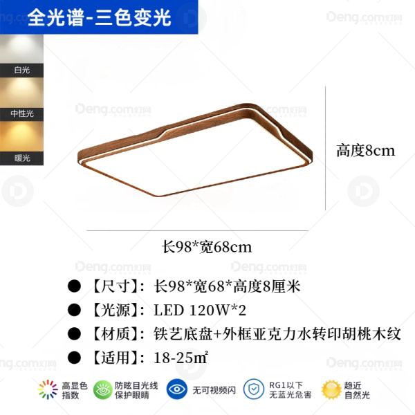 甲米·原木铁艺客厅喷漆磨砂中式吸顶灯 型号:848-98*68三色
