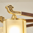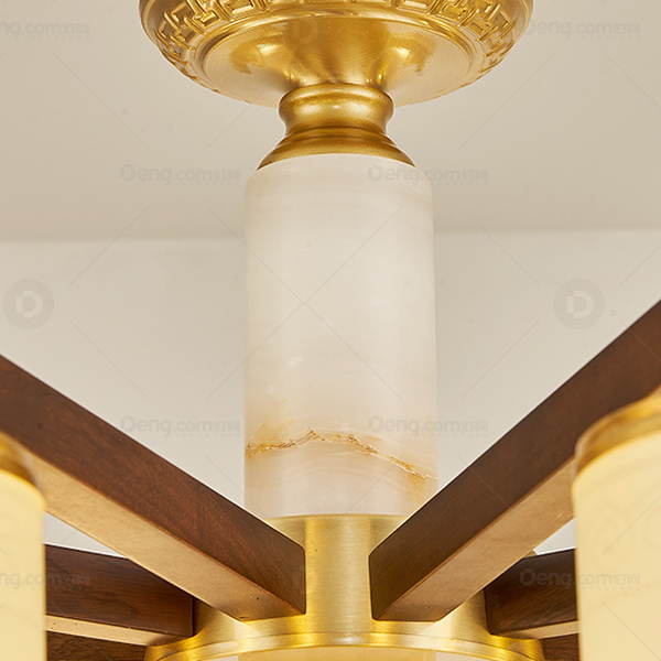 新中式 吊灯 铜+沙比利木灯臂 玉石中柱 朝下焊锡玻璃灯罩可选