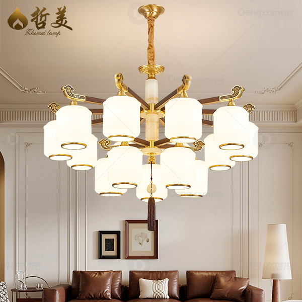 哲美铜客厅染色新中式吊灯 头数:12头 型号:LJ1096-12头玻璃灯罩