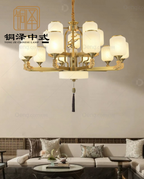 铜泽铜客厅压铸新中式吊灯 头数:15头 型号:70002劲松映月-10+5